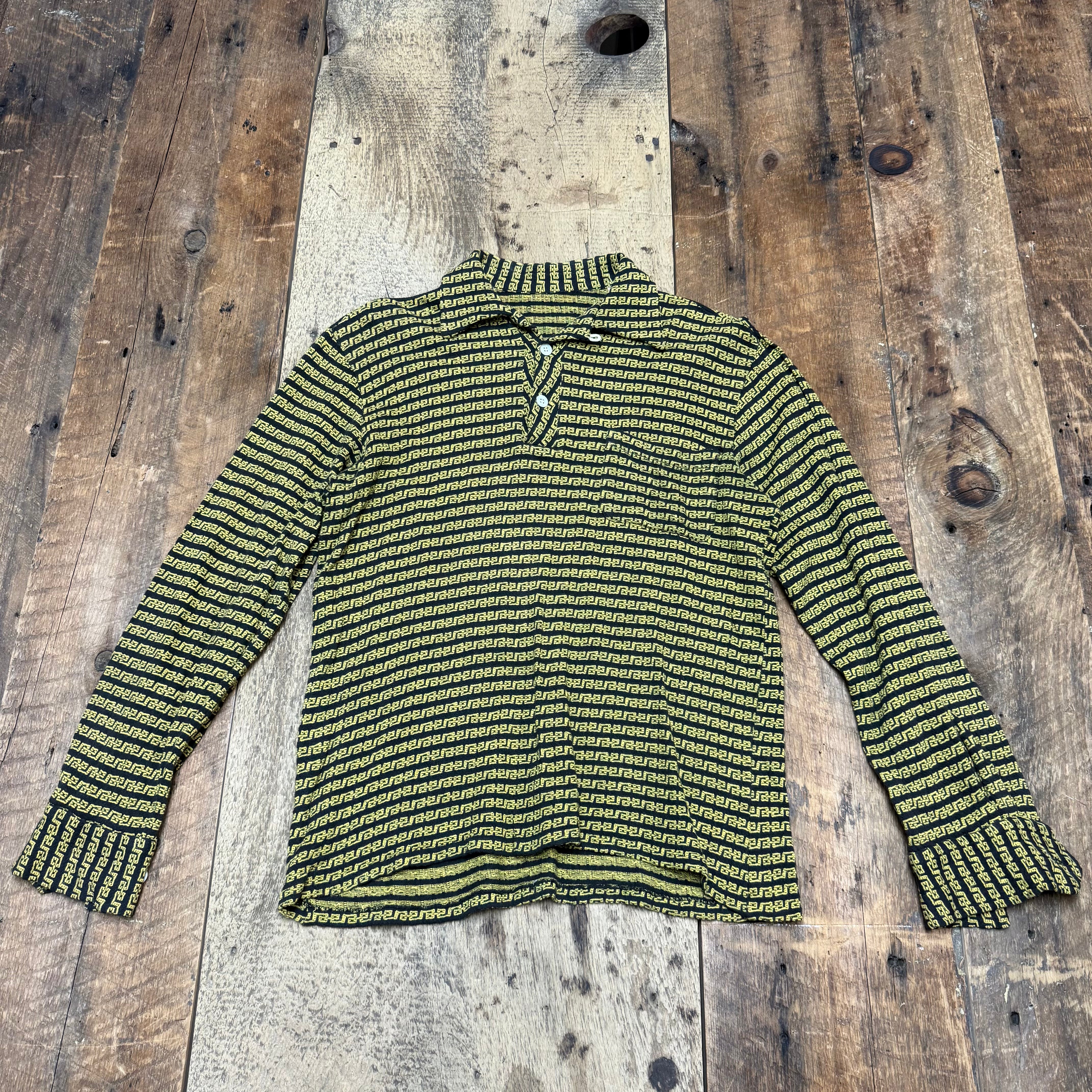 Vintage 60s Loop Collar Long Sleeve Polo Style Shirt